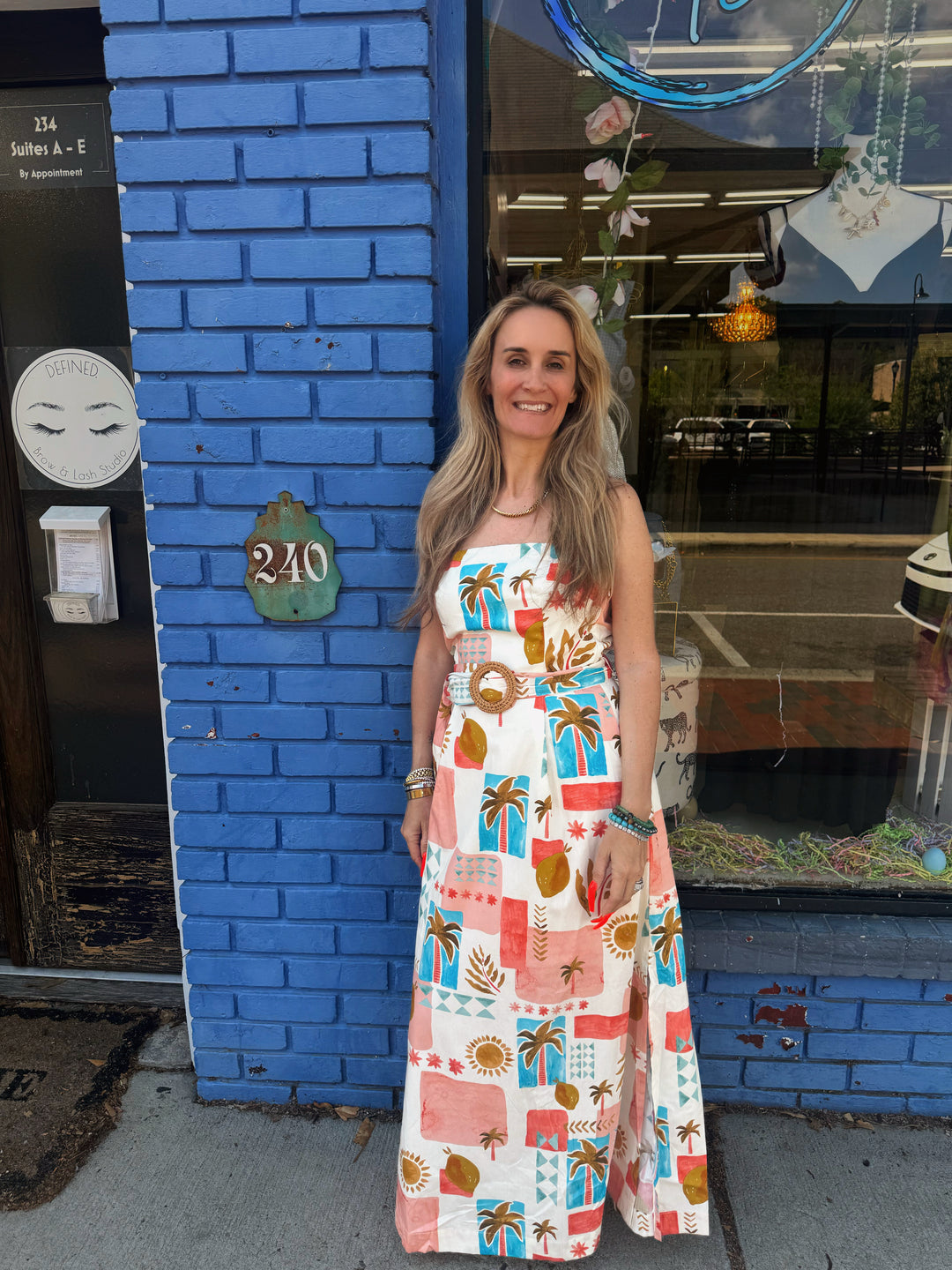 Brown Glitter Mesh Strapless Front Twist Maxi Dress
